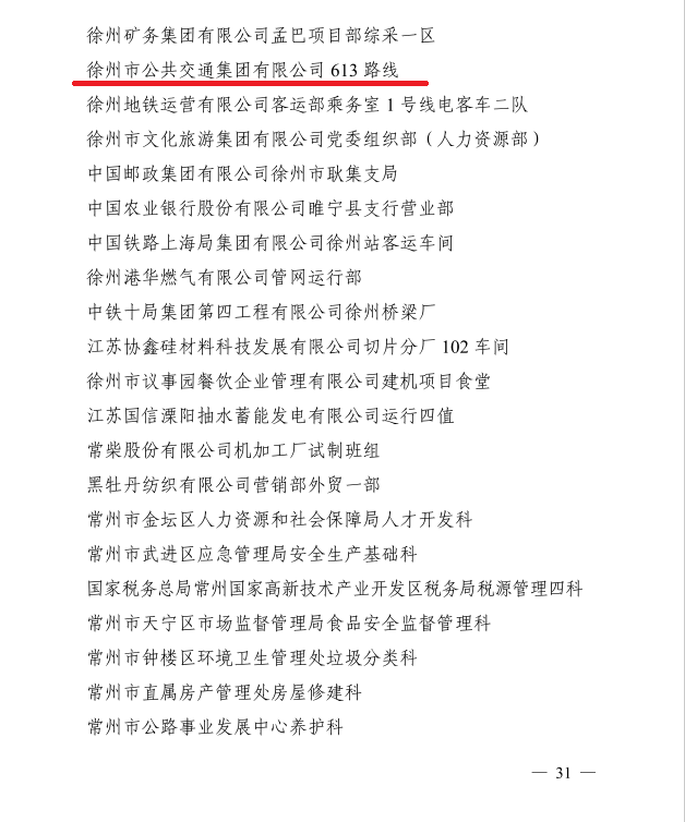 4月28日下午,江蘇省總工會發(fā)布關(guān)于表彰2022年省五一勞動獎和省工人先鋒號的決定,徐州交控公交集團(tuán)613路線獲得“江蘇省工人先鋒號”殊榮。