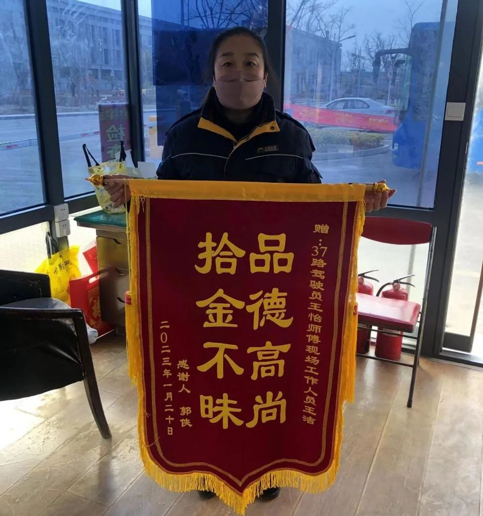 1月19日,失主郭女士通過(guò)公交集團(tuán)熱線電話聯(lián)系到車隊(duì)管理人員,經(jīng)過(guò)車隊(duì)的查詢落實(shí)后,郭女士與工作人員約好時(shí)間前來(lái)取回失物。1月20日,郭女士送來(lái)了一面錦旗錦旗,并撥打了熱線電話12345表?yè)P(yáng)駕駛員王怡拾金不昧的精神。王怡熱心助人的行為充分體現(xiàn)了徐州公交駕駛員高尚的道德品質(zhì),他用實(shí)際行動(dòng)體現(xiàn)了 “向善、向美、向上”的價(jià)值追求,在平凡的崗位上傳遞公交正能量。