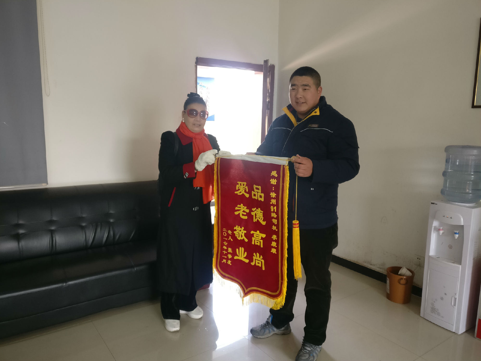 如果你是一線陽光,你是否照亮了一分黑暗。11月21日,李康康正在執(zhí)行末班車的任務(wù),夜晚比較寒冷,車上乘客也比較少。即將到達終點站時,車上僅剩一位年近70的張女士,李師傅看到她神情慌張看著窗外。經(jīng)過詢問,得知張女士剛搬到新城區(qū)住不久,迷路了。李康康考慮到張女士年齡較大,于是就把想送張女士回家的想法向線路長及公司做出了匯報。經(jīng)批準后,他開車將張女士送回了家。事后,張女士為了表達謝意,為李師傅送來一面錦旗。