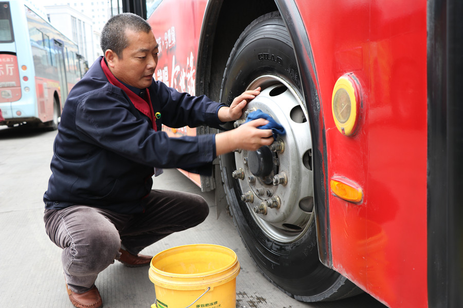 85路線經過礦區(qū)路況差,一趟車下來車就很臟了,黨員祁保華把勞動當成一種樂趣,只要車輛停下來,他就會拿起刷子,把車身從前到后刷上一遍,再用抹布細細擦,輪胎更是一趟一擦,一天8個來回,他就要擦8遍輪胎。晚上在文化宮跑夜班,都晚上9點了,他還借著微弱的路燈,里里外外把車打掃干凈。在他的帶動下,85路線駕駛員由觀望到比賽,都成了車輛保潔的好手。