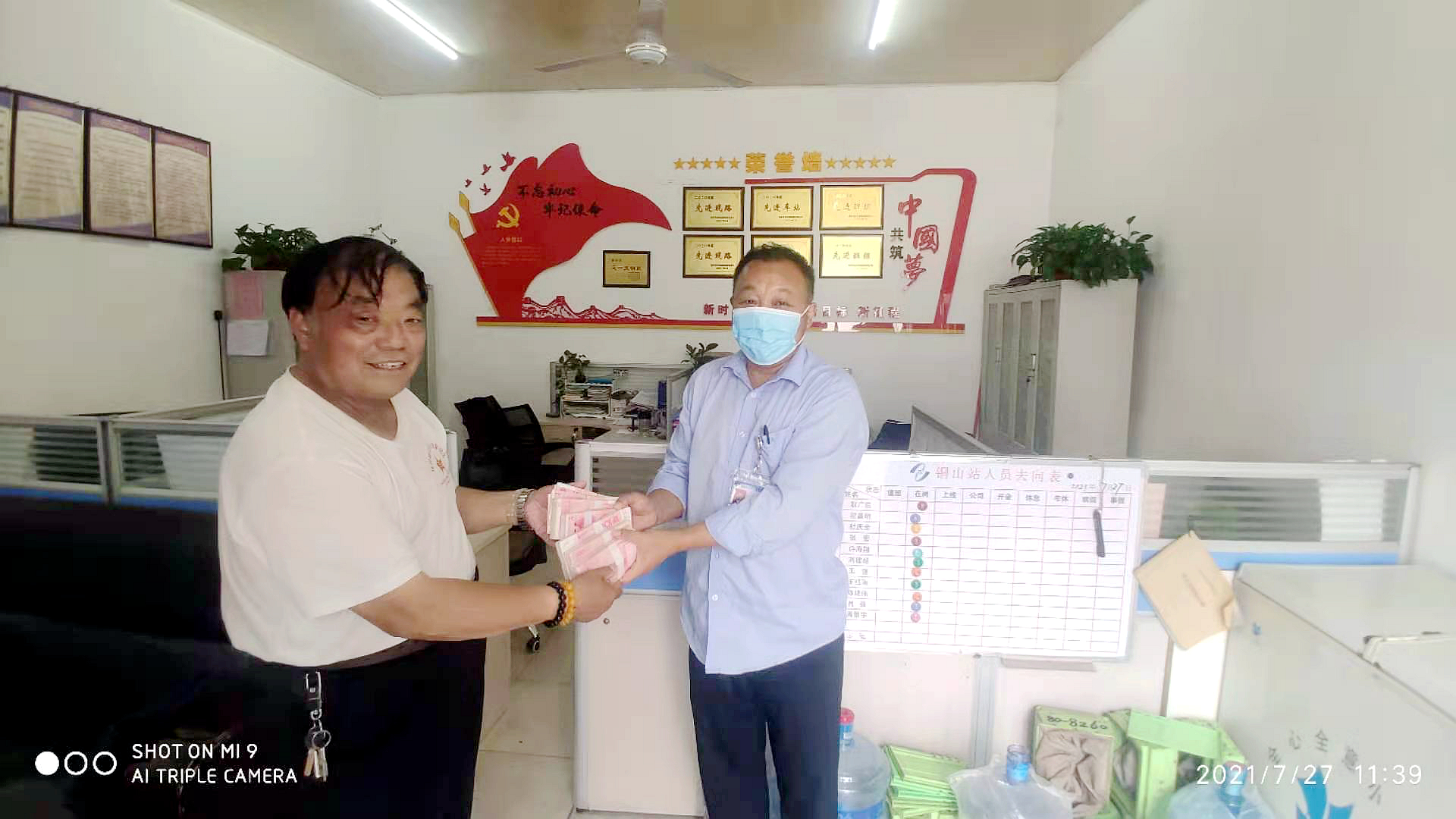 7月27日11時許,83路線駕駛員彭光明駕駛著8235號車回到銅山汽車站,在車廂內(nèi)清掃消毒時,發(fā)現(xiàn)一個乘客遺失的紅色布包,打開布包發(fā)現(xiàn)里面全是打捆的現(xiàn)金,共計6萬元。彭師傅當(dāng)即將布包交到車站值班室。