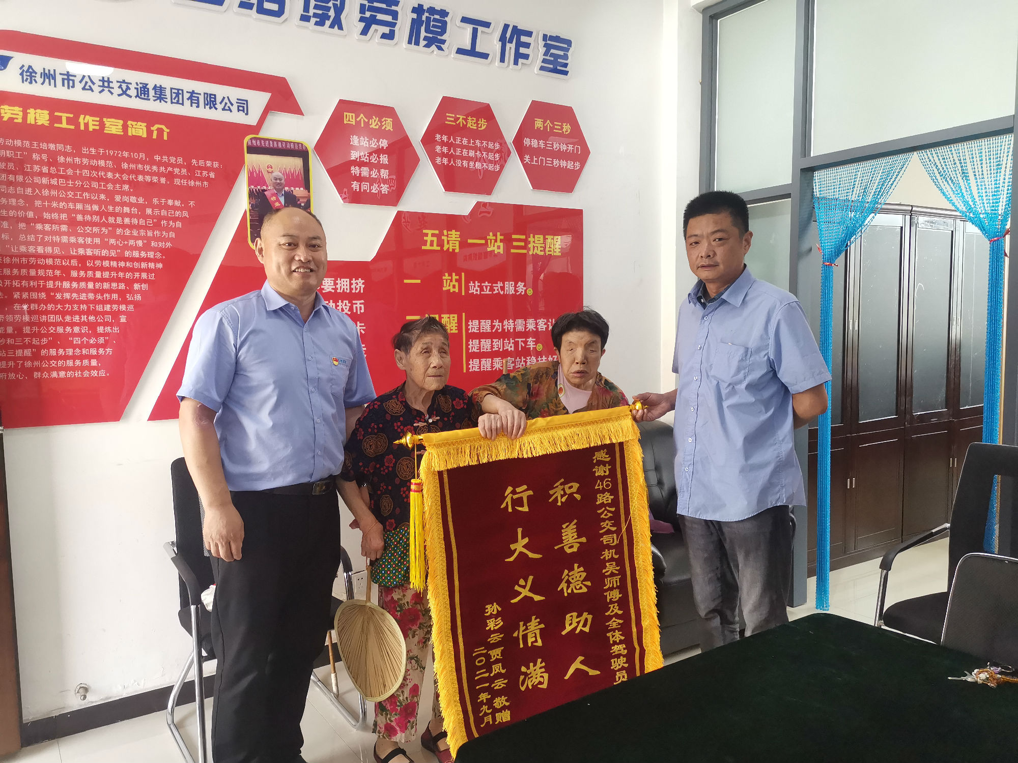 在國慶節(jié)的前一天,新城公司接待了兩位特殊的老人,她們手里拿著導盲棒,走路顫顫巍巍的,懷里緊緊抱著一面嶄新的錦旗。
