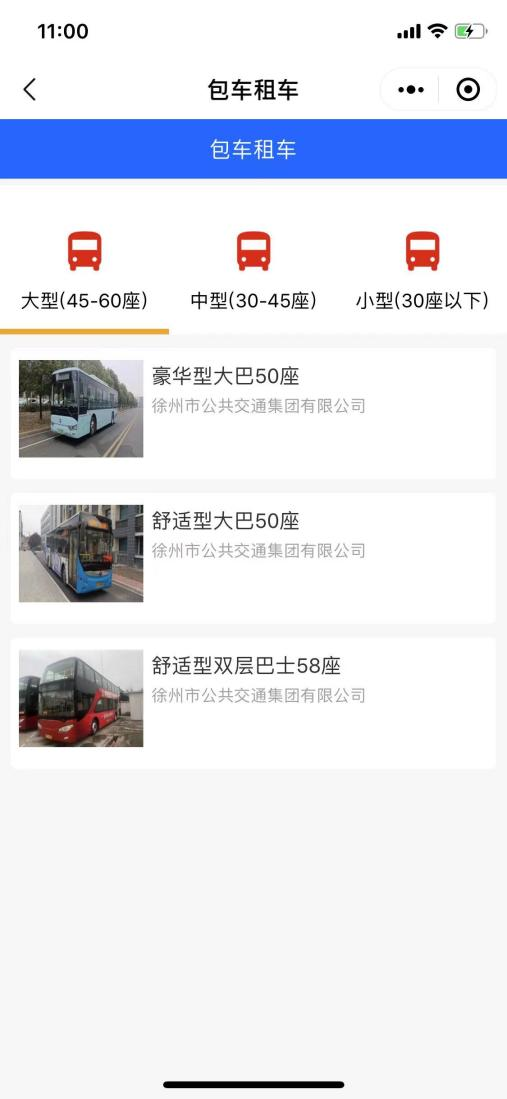 微信小程序操作流程:乘客可以在微信---發(fā)現(xiàn)---小程序功能中搜索“徐州公交包車(chē)”,即可找到對(duì)應(yīng)的微信小程序。點(diǎn)擊“公交包車(chē)”進(jìn)入包車(chē)頁(yè)面,選擇需要的車(chē)型。