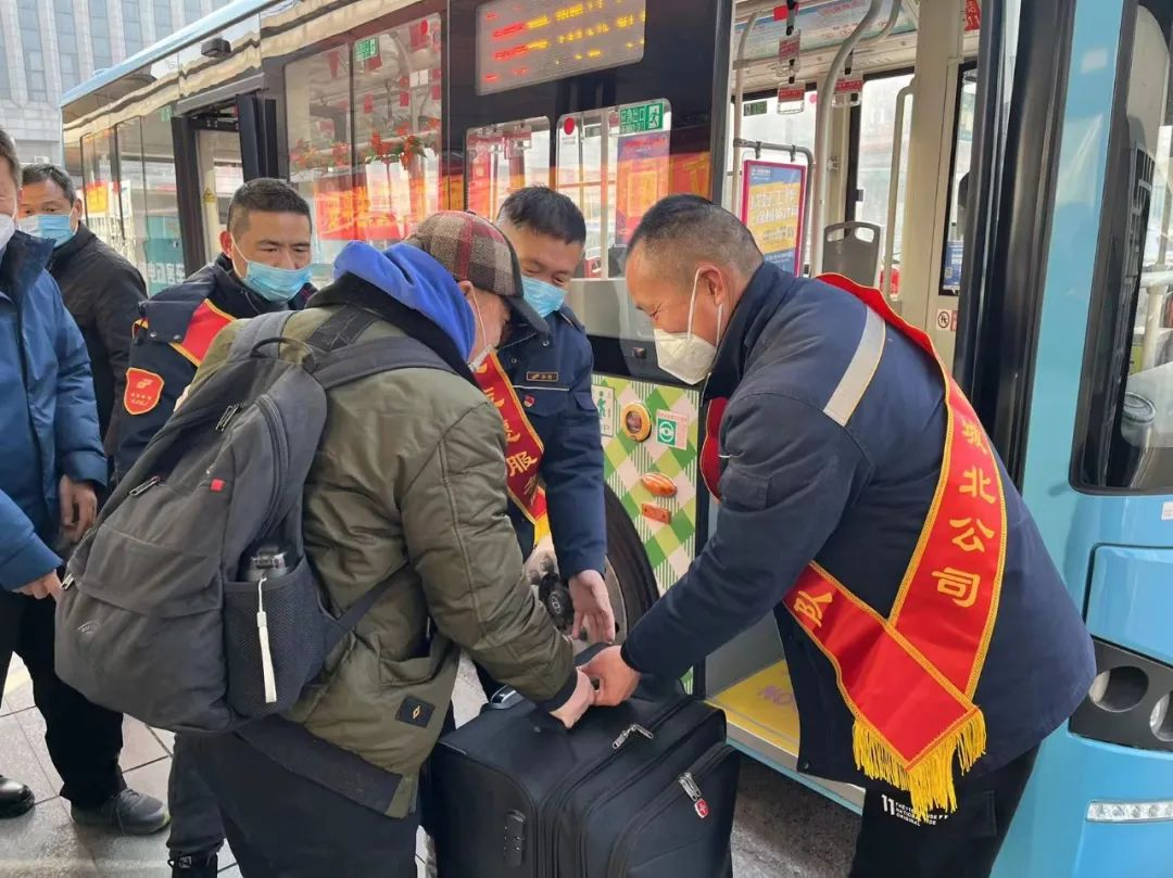 春運期間,城北巴士公司黨支部組織愛心服務(wù)隊和黨員先鋒崗在徐州站等客流密集站點開展志愿服務(wù),維持現(xiàn)場乘車秩序,幫助乘客搬運行李,開展“三品”檢查,他們以嚴謹?shù)淖黠L(fēng)、熱情的態(tài)度、溫暖的話語,贏得了乘客廣泛好評。此外,文明引導(dǎo)員在站點詳細記錄客流情況,提醒乘客戴好口罩,有序上車,并傾聽乘客反饋意見。