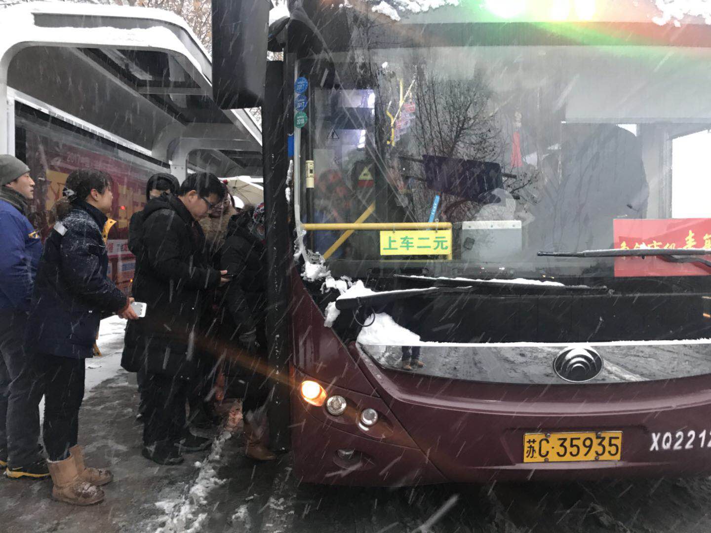 為保證冰雪嚴(yán)寒天氣公交車運(yùn)力正常,公司提前對(duì)2300余輛公交車進(jìn)行了安全性能的全面普查及換季保養(yǎng)作業(yè)項(xiàng)目,進(jìn)一步加強(qiáng)車輛的日常維護(hù)及“三檢”,嚴(yán)格執(zhí)行維保規(guī)范,確保車輛設(shè)備的防凍液冰點(diǎn)值不低于-15℃,并提前更換了-10號(hào)柴油,防止燃?xì)廛囕v冰堵。修理人員冒著風(fēng)雪,手凍得通紅仍堅(jiān)持在現(xiàn)場(chǎng)搶修車輛;智能調(diào)度平臺(tái)利用3G視頻實(shí)時(shí)監(jiān)控線路運(yùn)營(yíng)情況,利用車載語(yǔ)音不斷播放安全提示,做好雪天行車安排;公交出租450輛出租車全部出車……4日晚,市區(qū)雪深已達(dá)375px,氣溫-7℃。大雪造成高鐵晚點(diǎn)6小時(shí),10路線立即增派7輛加班車增加24個(gè)班次,直至5日凌晨4:07最后一班車發(fā)車,堅(jiān)決不滯留一名乘客,全力保障了雪天市民的安全出行。