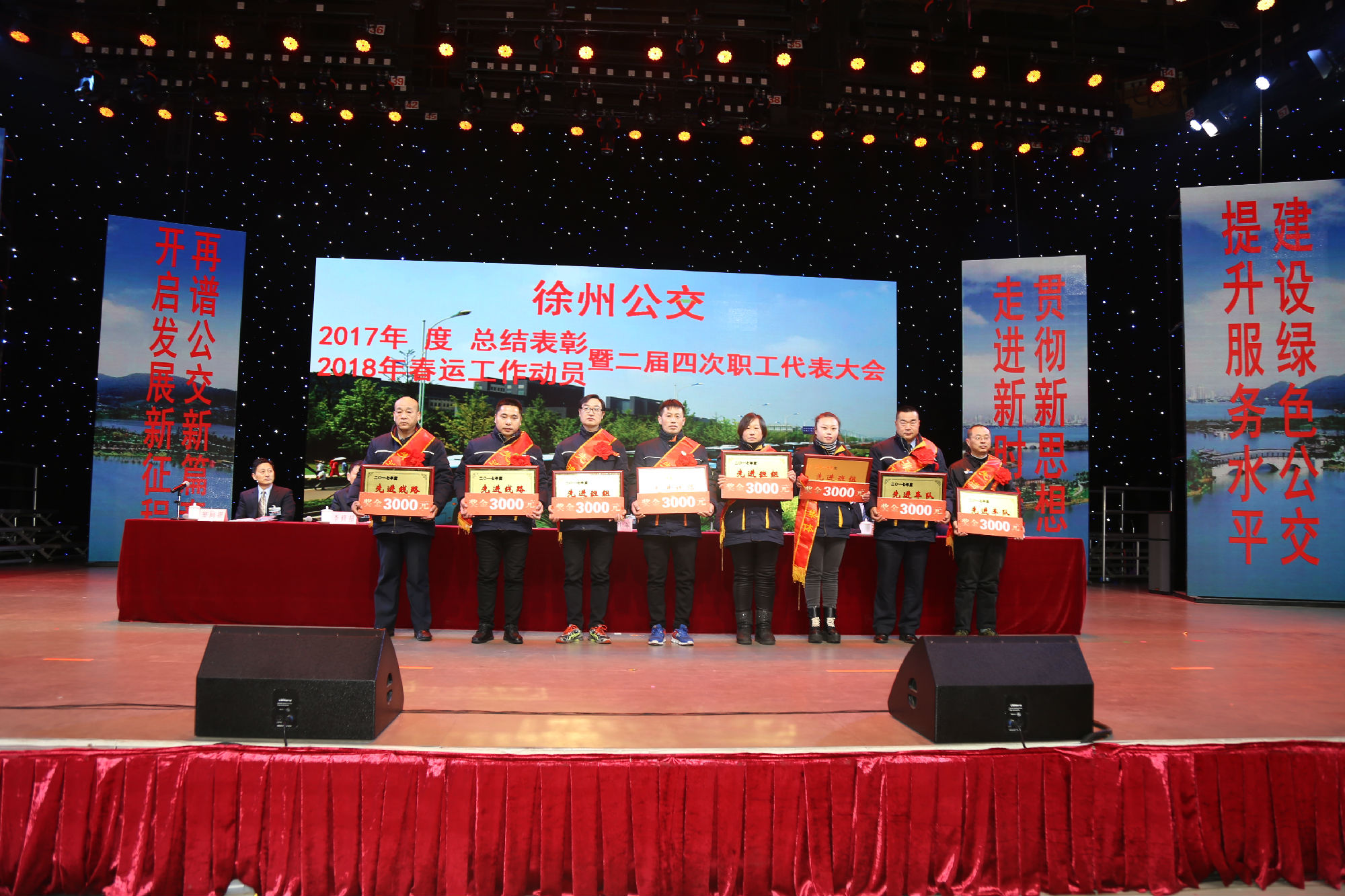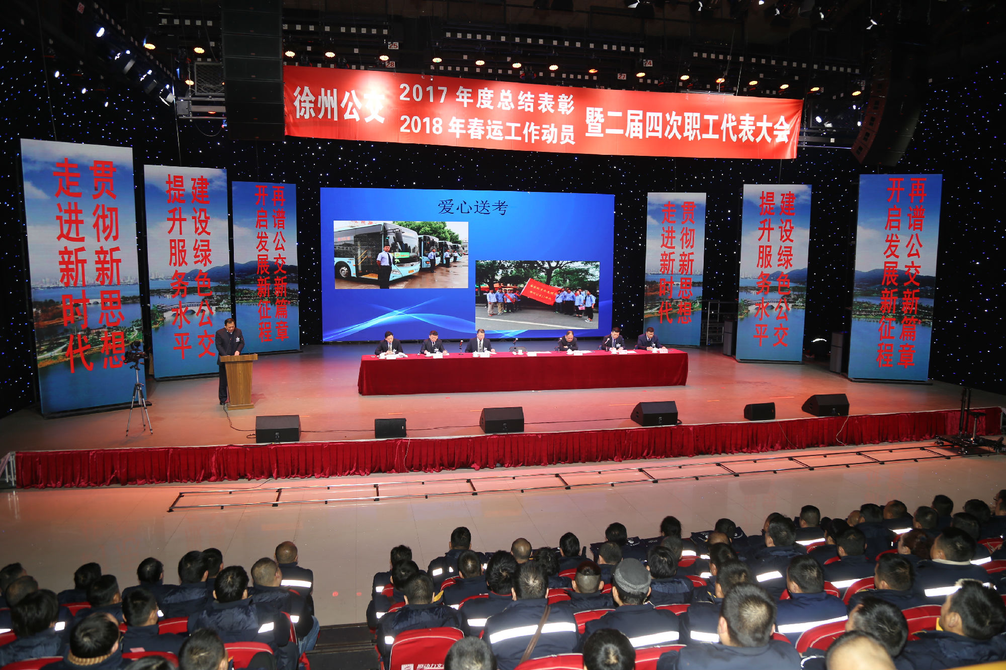 大會在莊嚴的國歌聲中拉開序幕。公司董事長、總經(jīng)理杜紅軍首先作經(jīng)理工作報告,對2017年“改革創(chuàng)新年”工作進行了全面總結:一、實施“同城同價”,優(yōu)化運營管理,實現(xiàn)服務水平新突破。連續(xù)第五年面向全市征集線路線網(wǎng)優(yōu)化意見近3000條,據(jù)此新辟優(yōu)化線路29條。二、深化資源共享,在互聯(lián)網(wǎng)+企業(yè)管理上譜寫新藍圖。繼續(xù)深化集中維修,推行集中例檢。論證實施支付寶、微信、銀行卡閃付等智能化移動支付方式。三、深化文明創(chuàng)建,打造優(yōu)秀公交,服務民生出行贏得新口碑。在國檢、省檢中未失一分,圓滿完成創(chuàng)建驗收任務。投訴總數(shù)和有責投訴同比實現(xiàn)“雙下降”。乘客表揚同比上升近20%。公司在2016年行風熱線上線單位滿意度評議投票中名列榜首。率先打造公交行業(yè)禮讓斑馬線嶄新形象,圓滿完成公交反恐防暴工作。四、著力綜合管理,聚合內生動能,增強企業(yè)發(fā)展新優(yōu)勢。重新修訂2012版管理制度匯編和新版《徐州公交獎懲條例》。五、踐行十九大精神,推進和諧發(fā)展,開創(chuàng)黨群工作新面貌。接著,杜總分析了工作中存在的問題,提出下步工作重點。一、建設現(xiàn)代化公交,提升經(jīng)營管理水平,保障企業(yè)良性有序運行;二、踐行集約共享理念,深化科技應用,開創(chuàng)公交事業(yè)發(fā)展新局面;三、建設平安公交,提升服務口碑,展示文明公交新形象;四、踐行十九大精神,構建和諧公交,開啟黨群工作新面貌。